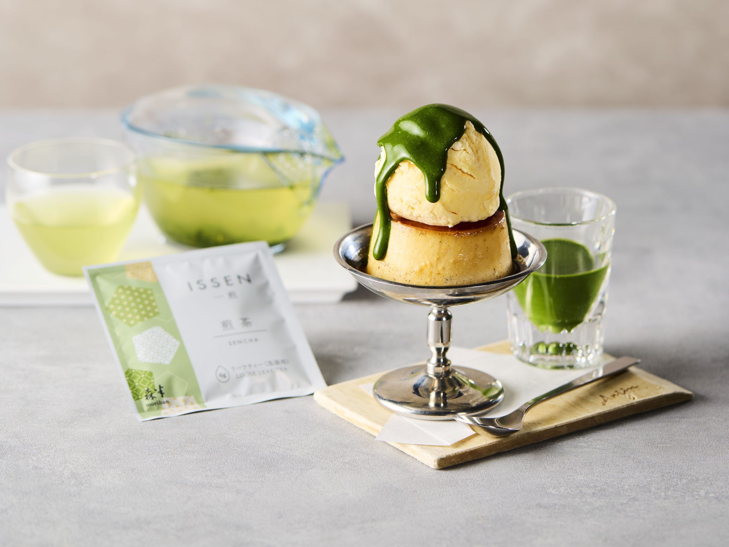 さらに、特別メニューでは五感で味わう急須「CHASTA」を使用して、自身で「ISSEN」の煎茶を淹れることができます。Anjinプリンと共に、茶葉がゆっくりと開いていく様子や、急須で淹れたお茶ならではの香り・味わいを楽しめます。