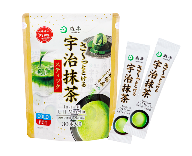 特殊なスプレードライ製法でさらっと溶け、冷水でも簡単に溶けます。個包装で持ち運びにも便利、毎日の健康習慣に最適です。森半の茶師が厳選した宇治抹茶を楽しめ、茶葉に含まれるカテキンなどの体にいい成分をまるごと摂取できます。