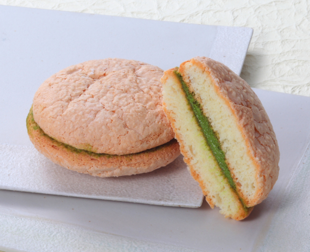 もちもちの食感の生地に、抹茶クリームをサンドしました。風味豊かな抹茶の味わいがお口に広がります。