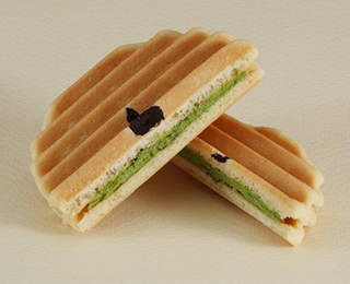 バニラの甘い香りのさくさくクッキー生地に風味豊かな宇治抹茶のクリームをサンドしました。