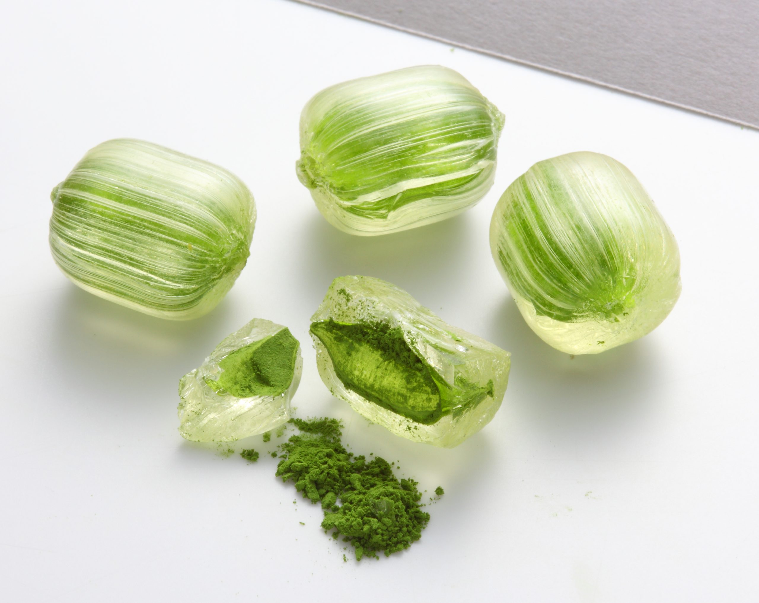 抹茶をそのまま飴の中に閉じ込めています。上質な砂糖と水飴のみを使用し本地釜で仕上げました。